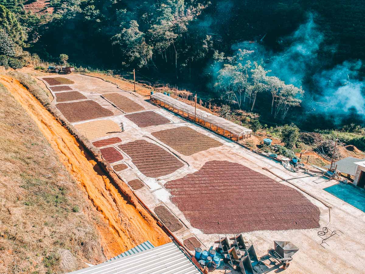 Brazil has a strong reputation for its production of natural and pulped-natural coffees. In the natural process, coffee beans are harvested and dried, typically on spacious concrete patios.