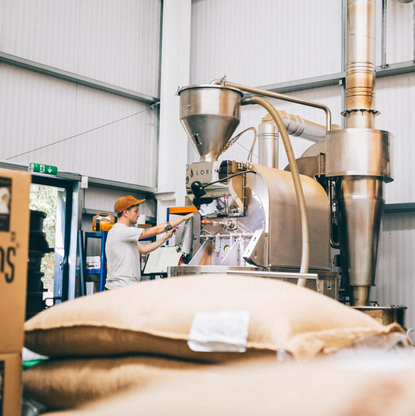 We roast all our coffee on a Loring S35 eco roaster. These state of the art machines all consistent, repeatable batches and emit no smoke during the roasting process. They use up to 80% less gas and emit up to 80% less Co2 compared to other roasting methods.