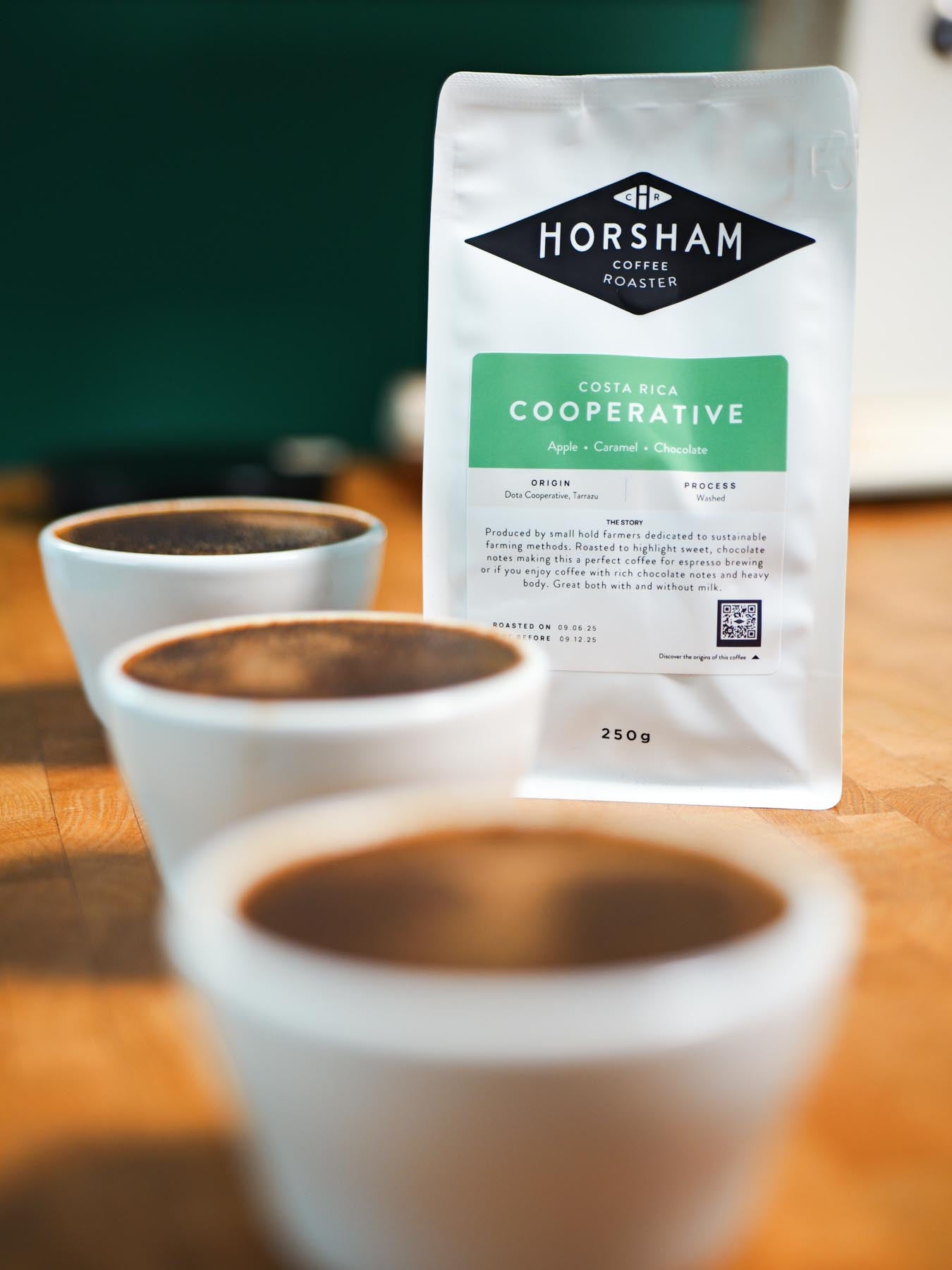 Cooperative - a medium to light roast blend of small hold producers. Tasting notes include chocolate, apple and caramel.