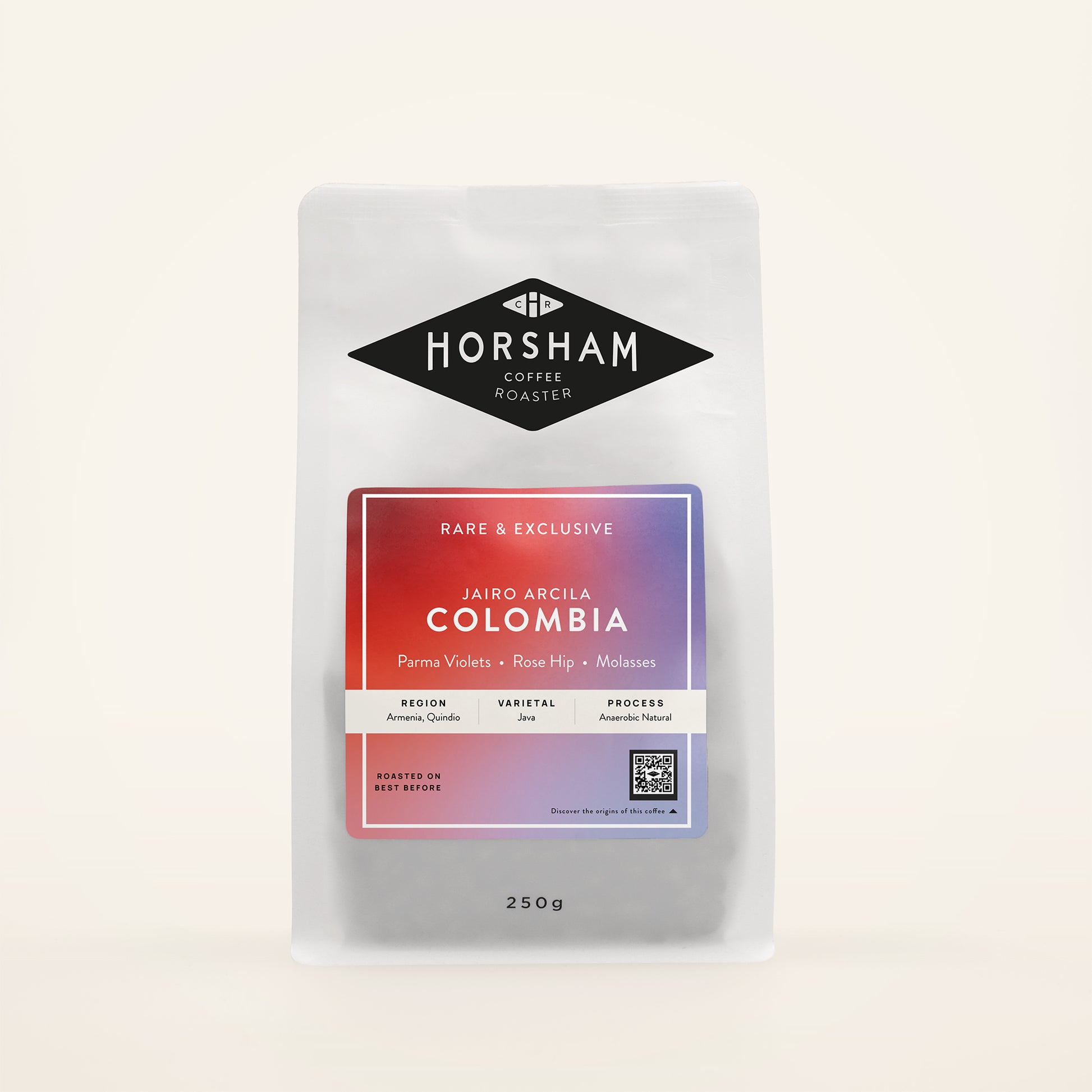 This coffee was grown by Jairo Arcila at the farm Santa Mónica and harvested from Java varietal trees. Harvesting is done by hand with careful cherry selection followed by flotation to remove defects then further.