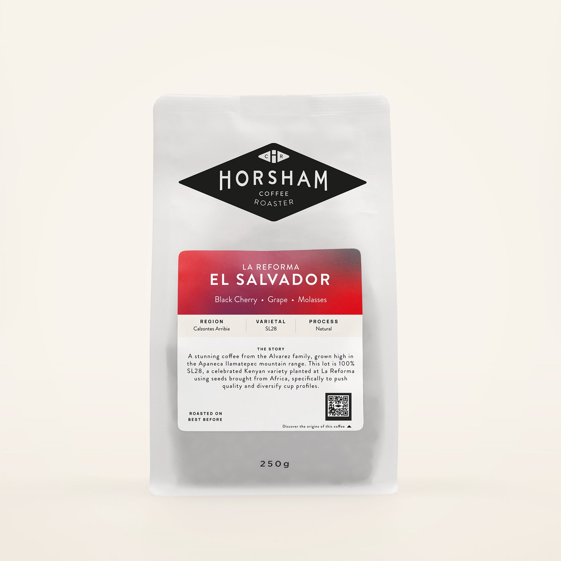 La Reforma SL-28 is a stunning coffee from the Alvarez family, grown high in the Apaneca Ilamatepec mountain range in Calzontes Arriba, Santa Ana, El Salvador. Sitting between 1,300 and 1,450 metres above sea level, the farm enjoys cool 20°C average temperatures, sandy loam soils, and around 2,300 mm of rainfall each year – ideal conditions for slow, sweet cherry maturation.